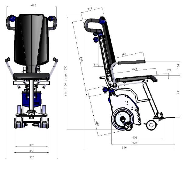 - 超小轉彎半徑,適用於任何狹窄的樓道和陡峭的樓梯