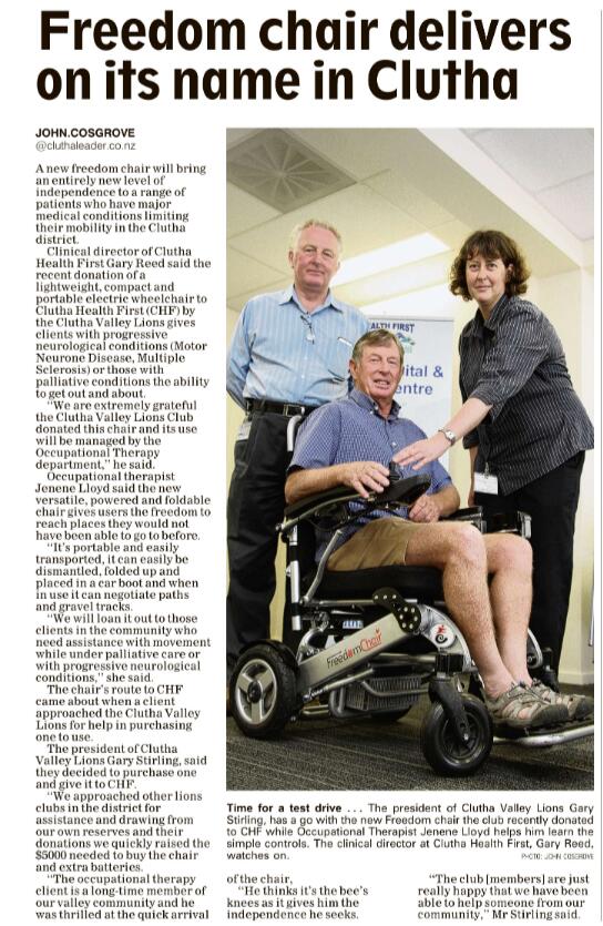 · FreedomChair 在外國報章也有相關的採訪報導,深受外國職業治療師力薦產品 (Clutha Newspaper 2019,Feb 7)