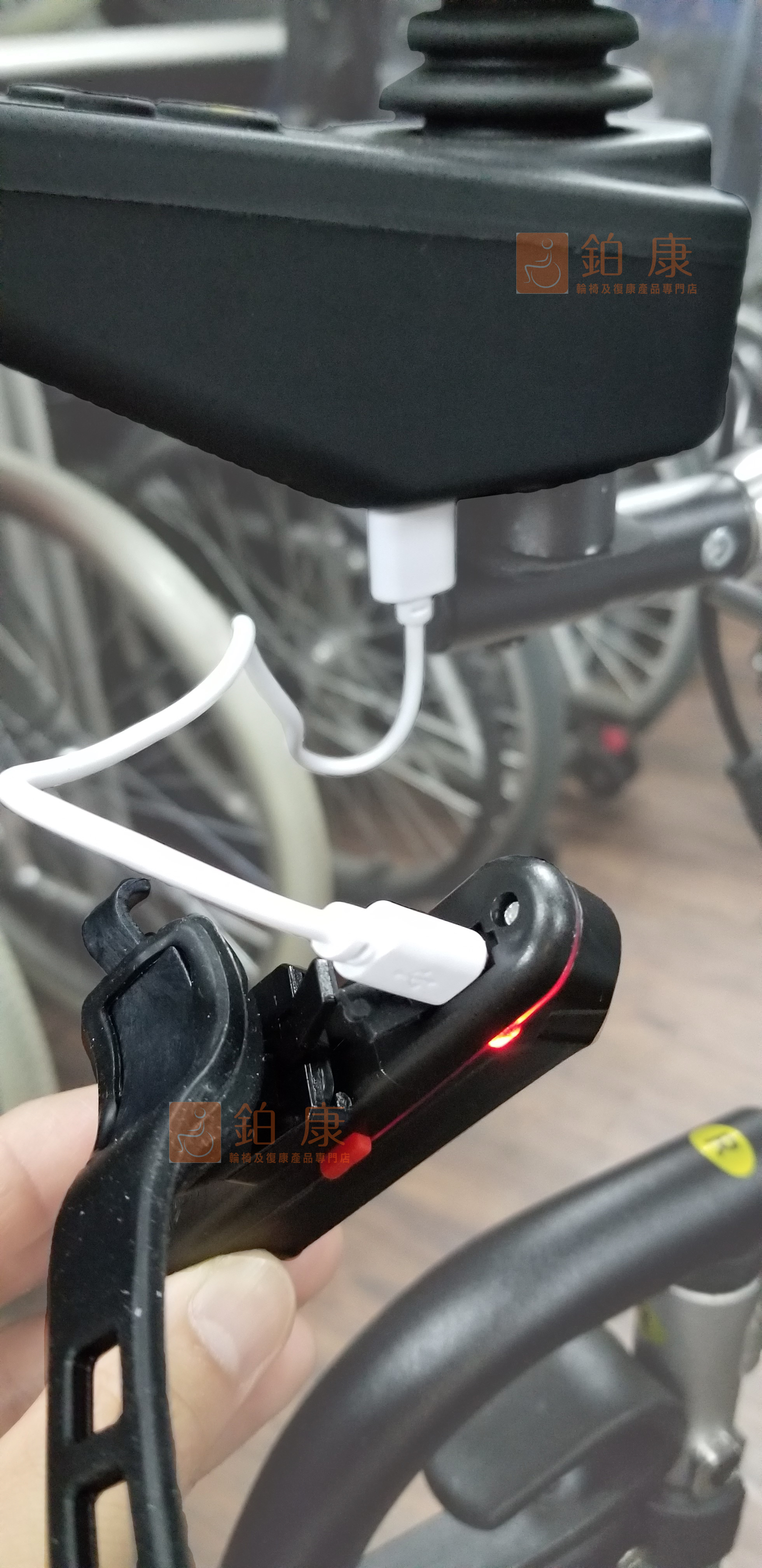 ‧ 輪椅頭尾LED燈內擁有紅色和白色可選擇使用,方便使用在前方及後方照明