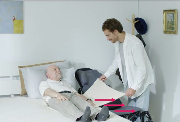 後輪小的話,在移位的時候,輪子就不會擋在坐椅跟床之間,被照護者幾乎可以是在同個平面上側向移位。