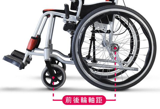 誰說的? 影響輪椅穩定的關鍵,不在輪子的大小,而是在前後輪的軸距、及輪胎與地板的接觸面積。