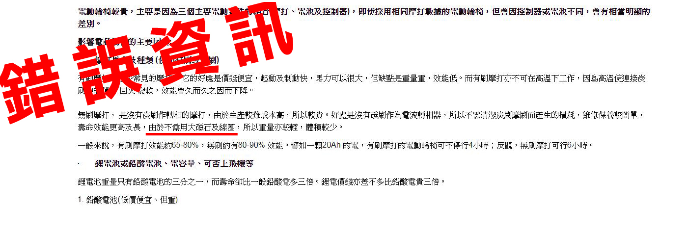 另外不管有刷摩打的電動輪椅或無刷摩打的電動輪椅都是需要擁有磁鐵及線圈令摩打轉動的,所以不要給不專業的人誤導了喔 !!