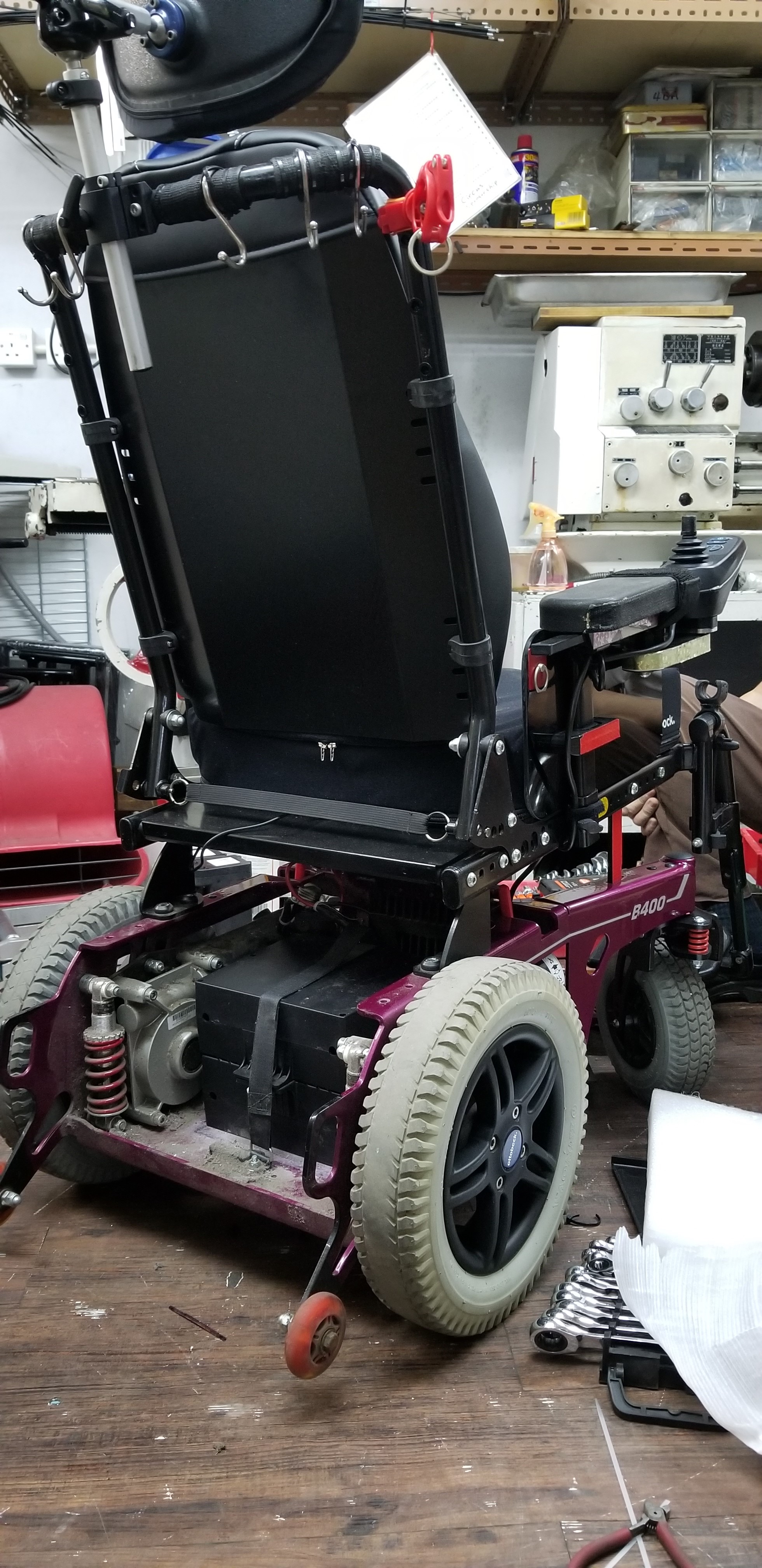 有客人上來問可否替他的ottobock牌子的電動輪椅更換電池。他沒有帶車來,希望我們先幫他報一報價。師傅問型號,一聽是B400,即問是有避震還是沒有的款式。