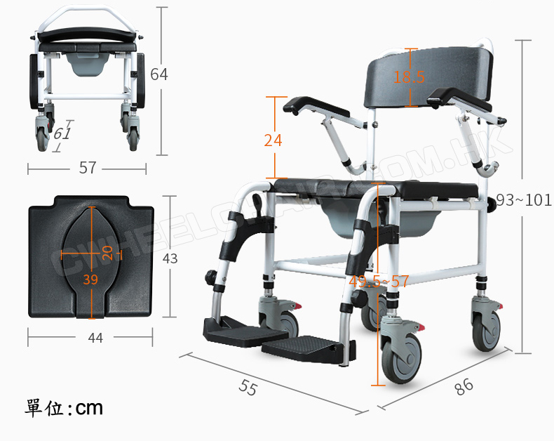 · 可調節座便椅高度,合適 不同使用者身高 及 家居環境使用上的配合